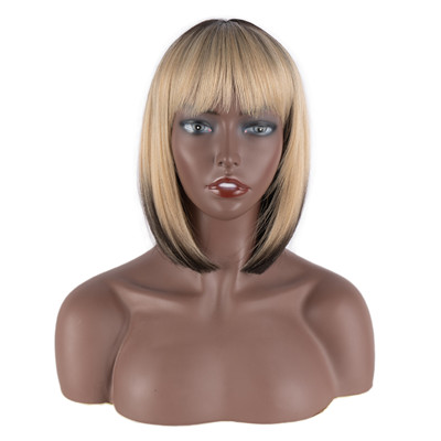 Fashion gray brown 15 inch short curling machine made synthetic wig